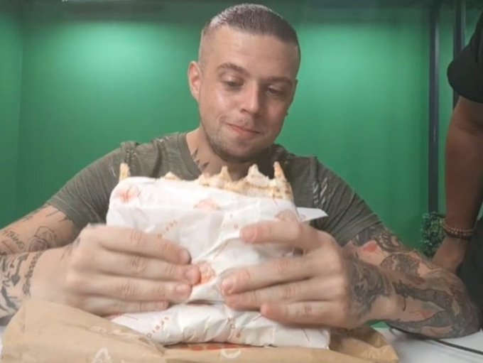 Alors qu'Alan met énormément de temps à finir un premier "gigatacos", il passe au second, et très vite, s'arrête : "Je vais vous décevoir, je vais m'arrêter là " :