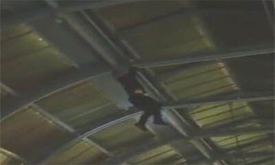 Les images d'un homme complètement ivre et con qui a voulu grimper sur les poutres d'un hall d'un bâtiment pour traverser à la force des bras la voûte. Mais ce dernier va manquer de force et au bout d'un moment va lâcher...