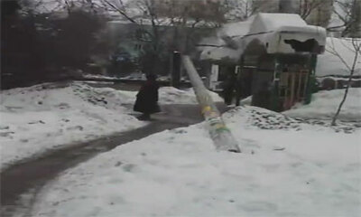 En Russie, une dame âgée a été victime d'un accident insolite avec un réverbère. Alors que des hommes coupent des arbres après de fortes chutes de neige, un arbre qui tombe entraîne le câble électrique d'un poteau qui so...