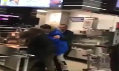 Pour je ne sais quelle raison, une bagarre éclate entre des clients d'un McDonald's à Stockport en Angleterre. On peut voir surtout un jeune homme se mesurer à un couple à travers toutes les pièces du restaurant comme da...