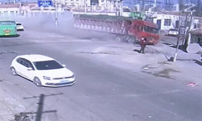 Cinq personnes ont été tuées et trois autres blessées après qu'un camion fou est percuté un bâtiment résidentiel en Chine. On peut voir sur ces images provenant d'une caméra de vidéo-surveillance, le camion arriver à tou...