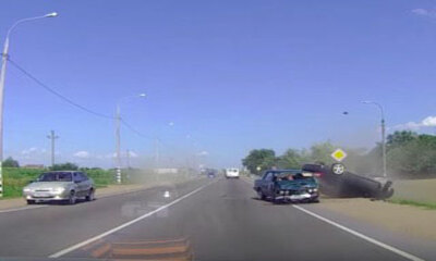 Sur une route en Russie, deux jeunes au volant qui sont ivres et qui roulent comme des cons provoquent un accident. Sur ces images, on peut voir la voiture des jeunes gens faire une embardée pour ensuite perdre le contrô...