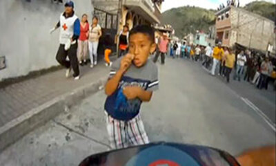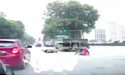 Au Vietnam, la caméra embarquée d'une voiture a filmé la collision entre un camion et un deux-roues. Mais par je ne sais quel miracle, le conducteur du deux-roues qui vient se faire percuter passe entre les roues du cami...