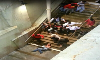 Lors d'une rencontre de football entre le Pérou et l'Argentine, des supporters des deux équipes adverses se sont battus comme des sauvages dans l'enceinte du stade. Sur ces images, on peut voir un homme couché à terre da...