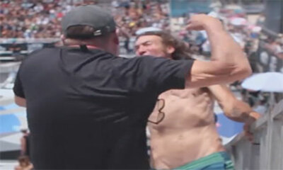 Aux États-Unis, lors de l'US Open of Surfing 2016 et autres compétition comme le skateboard à Huntington Beach en Californie, un homme ivre déambule dans les tribunes en insultant les gens. C'est alors qu'il s'arrête ver...