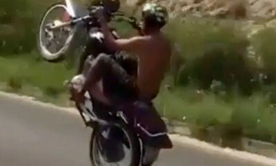 Faire de la moto sans protection et surtout torse nu est une fausse bonne idée. Exemple avec ce motard qui fait le beau en faisant des roues avant avec son bolide. Mais au bout d’un moment, il vient perdre l'équilibre et...