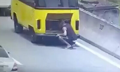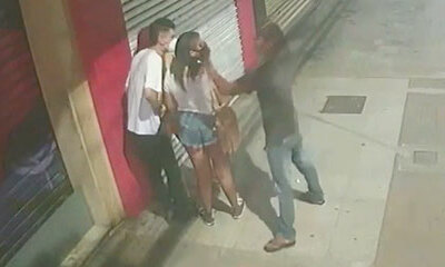 Un voleur armé d'un couteau a tenté d'attaquer un groupe de personnes dans une rue de Vitoria au Brésil, mais s’est blessé après être tombé sur l'arme. L’agression a été enregistré par les caméras de surveillance ce dima...