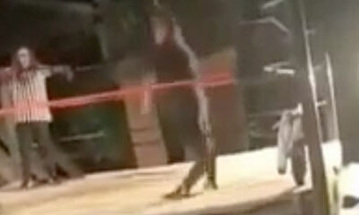 Lors d'un combat de catch aux États-Unis, un des catcheur arrive sur le ring et grimpe sur un coin. C'est alors qu'il se met à sauter en faisant une petite grille mais complètement sa réception. Pire sous le choc, les de...