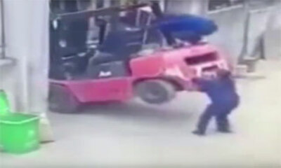Dans une usine en Chine où les règles de sécurité ne sont pas les mêmes que chez nous, une ouvrière s'est fait écraser par un chariot élévateur. Alors que le conducteur perdait l'équilibre avec son engin, la femme a voul...