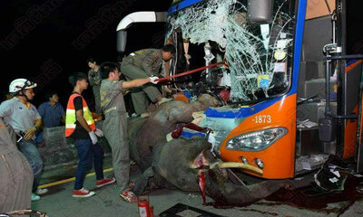 En Thaïlande, un éléphant a été percuté et tué par un bus alors qu'il se trouvait au milieu de la route. L'accident spectaculaire s'est produit sur la grande route entre Bangkok et Chiang Mai, au niveau de Lampang. L'ani...