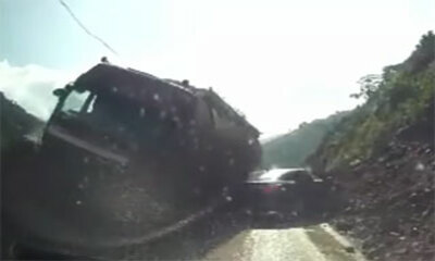 En Chine, la caméra embarquée d'un véhicule a filmé l'accident insolite entre un camion citerne et un automobiliste. Alors que la voiture emprunte une route de montagne assez étroite, aucun des deux véhicules ne voulant ...