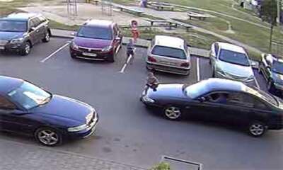 Sur un parking en Russie, un enfant se met à courir et surgit devant un automobiliste qui n'a pu le voir, car celui-ci était caché entre deux voitures. L'enfant se fait heurter et projeté au sol avant d'être pris en char...