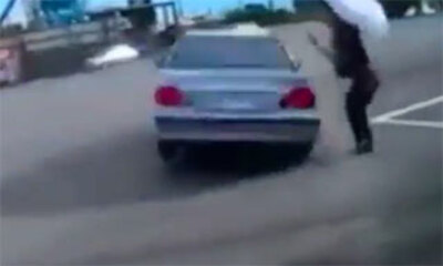 En Russie, la police tente d'arrêter des jeunes au volant qui refusent de s'arrêter après un contrôle d'alcoolémie. Sur de prendre la fuite facilement, l'un des jeunes se permet même de sortir du véhicule et de faire un ...