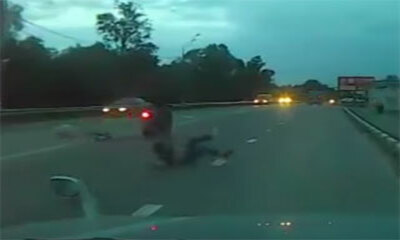 A Sakhaline en Russie, la caméra embarquée d'un conducteur a filmé le violent accident de la route d'un piéton. Alors que ce dernier traverse prudemment pour éviter les véhicules, une moto surgit et vient heurter le piét...