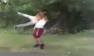 A la sortie d'un lycée, deux élèves pas content veulent se battre et semblent déterminés. Mais l'un des gars est peut-être mieux préparer, car celui-ci va donner une belle droite qui va faire trébucher son adversaire pou...