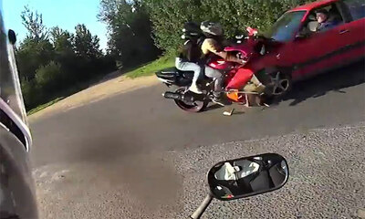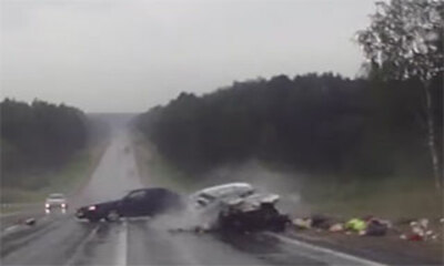 En Russie, un motard équipé d'une caméra embarquée qui filmait sa balade n'aurait jamais pensé assister à un tel accident. Alors qu'il attend à un cédez le passage pour s'engager sur la route, une moto arrive à toute vit...