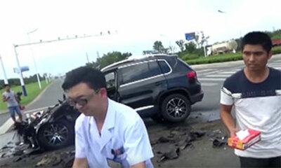 A Liyang City en Chine, le conducteur d'un SUV Volkswagen pensant que la route lui appartient, tente de brûler un feu rouge. Mais le conducteur va rencontrer un obstacle plus gros que lui sur la route et venir s'encastre...