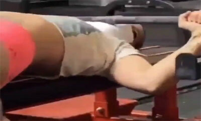 Dans une salle de sport (home gym), une femme veux tenter le Bench Press ou le banc à développé couché. Mais cet exercice doit souvent être pratiqué en duo pour éviter les accidents. Et bingo, madame va perde le contrôle...