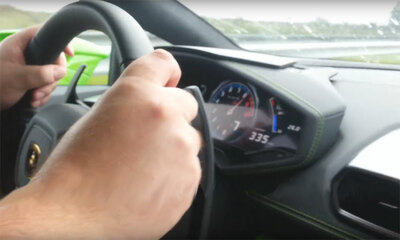 Les images vidéos capturées par une téléphone d'un passager de la Lamborghini alors que le conducteur roule à plus de 330 km/h sur l'autoroute M7 en Hongrie. On peut voir l'automobiliste rouler sur la voie de droite et v...
