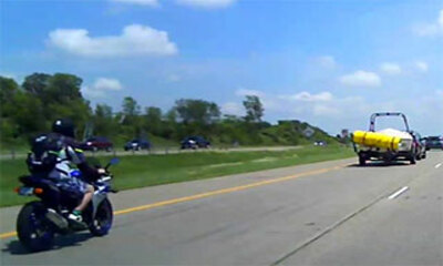 Sur une autoroute près de Woodbury, dans le Minnesota aux États-Unis, un motard circule derrière une remorque qui contient un tapis. Mais, ce dernier qui est enroulé se détache de la remorque et tombe sur la route. Le mo...