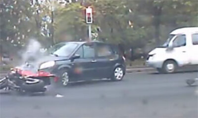 Des images qui montrent la violence d'un choc entre un motard et un automobiliste en Russie. On peut voir la moto venir se faire couper la priorité et venir heurter le pare-choc du véhicule pour qu'ensuite, le motard soi...