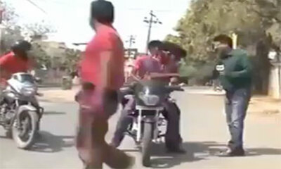 Alors qu'un journaliste interview des motards sur le bord de la route en Inde, un deux-roues qui roule un peu trop vite surgit et ne peut freiner à temps pour l'éviter. On peut voir sur ces images le journaliste se faire...