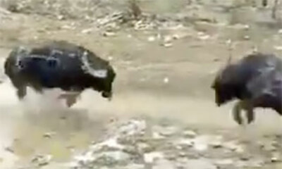 Dans le sud de la Chine, la tradition des combats de buffles perdure où l'animal est vénéré et peser jusqu'à 1 tonnes. Là-bas, des combats sont organisés entre ces animaux d'habitude si pacifiques comme ce face à face en...