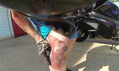 Ce motard américain a eu la très mauvaise idée de partir faire de la moto alors qu'il est en short et torse nu. Ce dernier a malheureusement perdu le contrôle de sa moto dans un virage et en chutant sa peau s'est transfo...