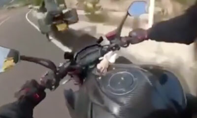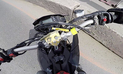 Un homme au guidon de s amont roule à vive allure sur une route. Alors qu’il suit et s’approche de son ami, il oublie de freiner et vient le percuter par l’arrière. Son pote est de suite éjecté de sa bécane pour venir he...