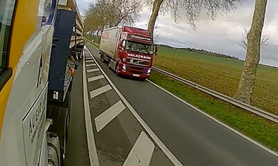 Ce vendredi 4 décembre, un camionneur a effectué un dépassement hyper dangereux sur la route départementale 2152 à Avaray, dans le Loir-et-Cher. Sur ces images provenant d’une cabine d’un autre camion, on peut voir le vé...