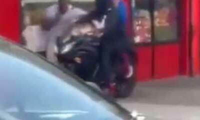 Une femme a filmé une scène insolite qui montre un vol avec violence dans les rues de New York. On peut voir deux hommes sur une moto s'approcher d'un gars pour le bloquer et venir le menacer avec une arme. Fort heureuse...