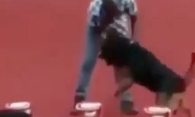 Lors d’un concours et démonstration de dressage canin, un chien attaque son maitre. Après avoir raté une première épreuve, l’animal saute sur son maitre et commence par tenter de vouloir lui attraper les mains pour la ré...