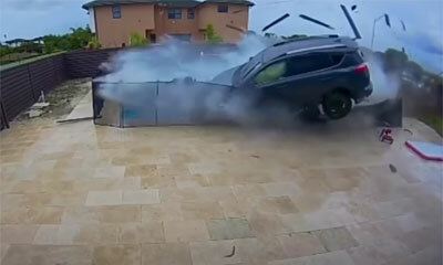 A Miami en Floride, le conducteur au volant d’un Toyota RAV4 se crash dans une piscine. Au volant de sa voiture, il fait un malaise et perd le contrôle de son véhicule pour venir percuter une clôture, survoler une piscin...