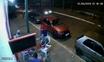 Assis sur une terrasse, un homme se fait percuter par une voiture. Le 01 août 2019 à Goiânia, au Brésil, le client d’un café avec une jambe blessée est assis à la terrasse d'un bar. A ce moment, une voiture arrive à tout...