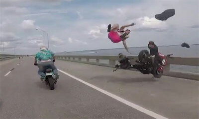 Un génie a eu la brillante idée de stationner sa moto sur le bord de la route pour filmer le passage du convoi de motard. Mais arriva ce qui devait arriver : un motard est venu percuter la moto. Lors d’un run sauvage en ...