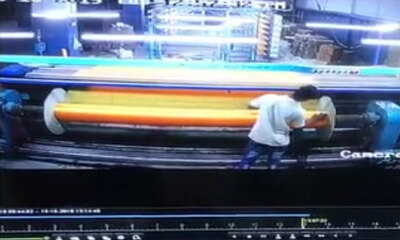 Accident insolite ce mercredi 16 octobre 2019 qui s’est déroulé dans une usine de textile à Surat, en Inde. Alors qu’un ouvrier travail sur une machine à tisser, il a été happé par le rouleau de la machine. Emprisonné av...