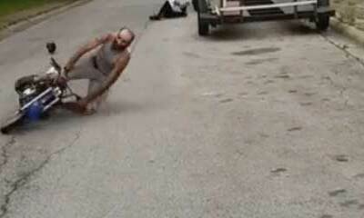 Dans cette vidéo insolite et trash, nous pouvons voir un homme au guidon de sa moto être soudainement distrait. On peut ainsi le voir filer tout droit en direction d'un poteau pour se le manger. Bilan pour monsieur : un ...