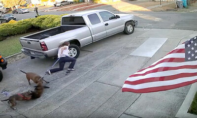 Deux chiens de race Pitbull ont attaqué un chat allongé sur le sol de la cour de sa maison. Sur cette vidéo partagée par le propriétaire du chat, nous pouvons voir une femme tenir en laisse deux chiens qui à la vue du ch...