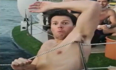 Lors d’une fête organisée sur un bateau, un homme tente de grimper sur une autre embarcation et glisse. Mais en chutant, il tombe sur un piquet d’un garde corps et s’empale une aisselle dessus. Forcément, il fait une drô...