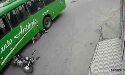 Décidément, être motard au Brésil est aussi dangereux que de se baigner dans une rivière remplie de crocodiles. Dans cette vidéo insolite, un motard se retrouve face à un bus à une intersection et tombe en avant, se retr...