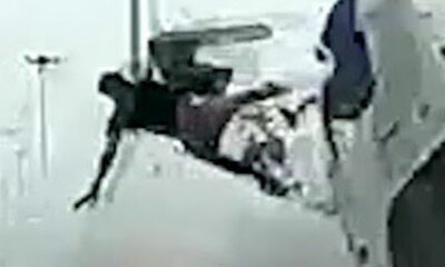 A Cainta, aux Philippines, un homme qui circulait à scooter a voulu passer entre un camion et un trottoir. Mais, celui-ci a chuté et en tombant au sol, le camion lui a roulé sur la tête. Mais par miracle et peut-être éga...