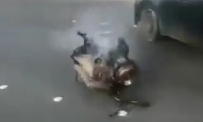 En Indonésie, deux hommes à scooter qui foncent droit dans une descente à scooter terminent dans des sacs de sable. En effet, cette descente jugée dangereuse a été équipée de sacs de sable afin d'éviter de terminer dans ...