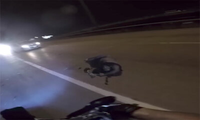 A Singapour, les caméras embarquées d’un véhicule ont filmé l’accident spectaculaire et violent d’un couple à moto. Alors que le conducteur qui filme la scène tente de doubler un véhicule stationné à droite, une moto lan...