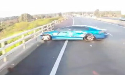 En Australie non loin de la ville de Perth, un conducteur au volant d’une voiture tente de dépasser rapidement un camion et vient le heurter. Sur ces images provenant de la caméra embarquée du camion, on peut voir le con...