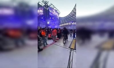 Pendant un concert de Jul, une femme se retrouve (par erreur ?) sur la piste où des BMX effectuent leurs figures. Elle court et gêne la performance. L’un des stuntriders ne ralentit pas et l’éjecte franchement d’un coup ...