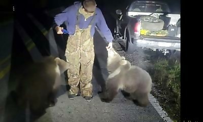 Dans le comté d'Okaloosa en Floride, deux oursons Kodiak ont été découverts errant au bord d'une route. Ces oursons, reconnus par leurs oreilles rondes et petits dos bosselés, se distinguent des ours noirs locaux. Proven...