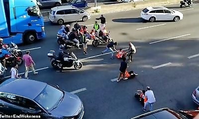 En plein jour à Lisbonne, des automobilistes mécontents ont pris des mesures rapides et efficaces pour faire face à des manifestants écologistes qui bloquaient la circulation. Une vidéo montre ces conducteurs quittant ra...