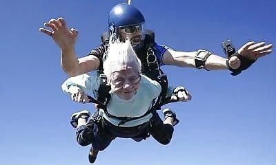 Dorothy Hoffner, âgée de 104 ans et originaire de Chicago, est devenue la personne la plus âgée à sauter en parachute, réalisant son exploit à 4114 mètres. Dorothy avait déjà tenté l'expérience du saut en parachute à 100...