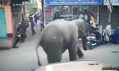 Cette vidéo filmée le 11 février à Arambagh, en Inde, montre le moment où un éléphant sauvage s'est égaré dans une rue commerçante, provoquant la fuite des piétons. Plusieurs véhicules ont été endommagés. L'éléphant a fi...