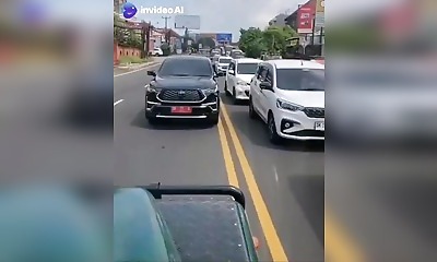 En Indonésie, un automobiliste joue des coudes pour pousser les autres conducteurs à se ranger du bon côté de la route ...
